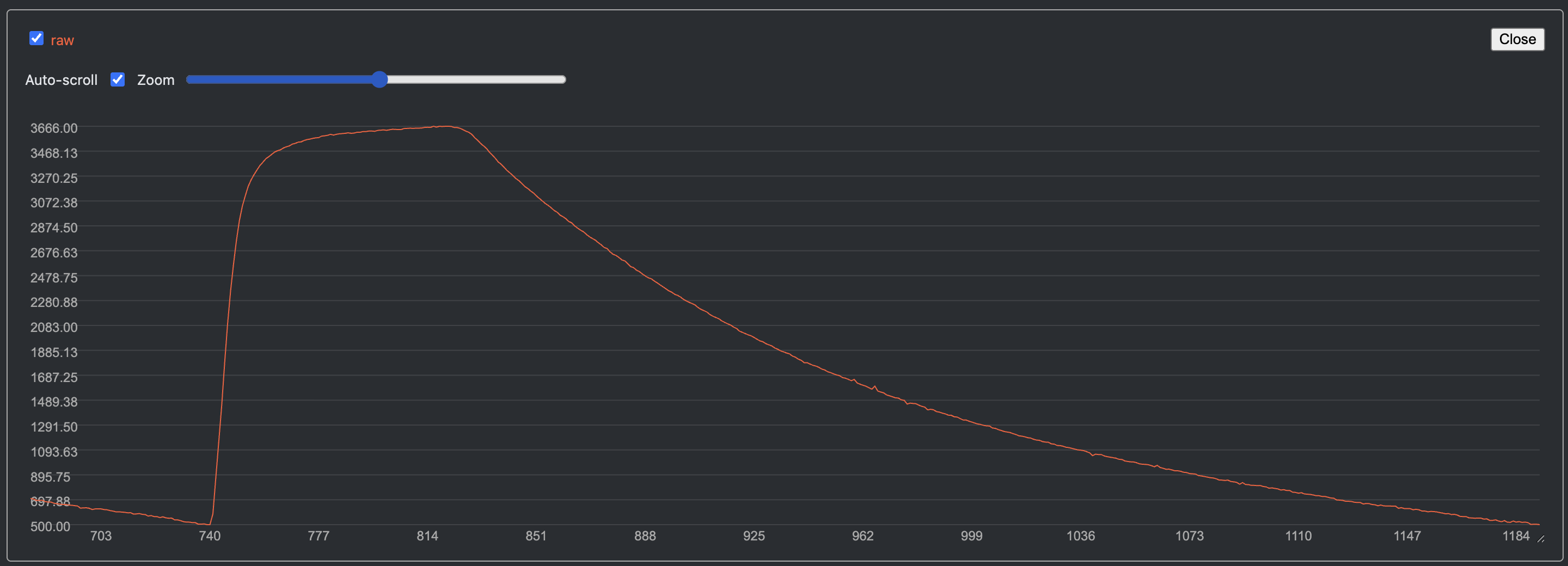 If you activate the DEBUG mode in the source code, the device will output raw sensor readings to the serial console.
